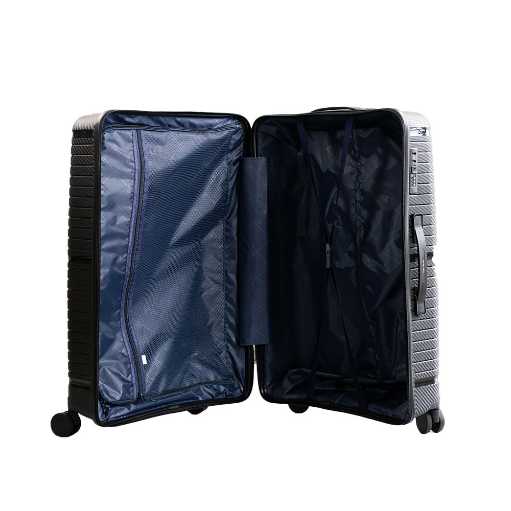 Maleta L Negra Moose, resistente y espaciosa, perfecta para viajes largos. Diseño ligero con ruedas 360° y asa retráctil que facilitan el transporte. Su estilo moderno y sobrio combina durabilidad y elegancia para acompañarte en cada aventura.