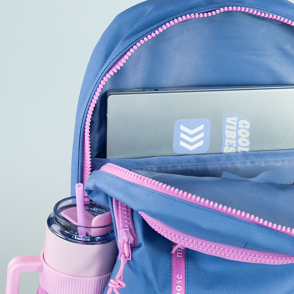 Amplia y resistente, perfecta para el día a día. Incluye bolsillo acolchado para laptop o tablet, correas acolchadas para mayor comodidad y cierres de alta calidad. Cuenta con dos compartimientos grandes, bolsillo frontal y bolsillos laterales para botellas. Fabricada 100% en poliéster con costuras reforzadas para máxima durabilidad.